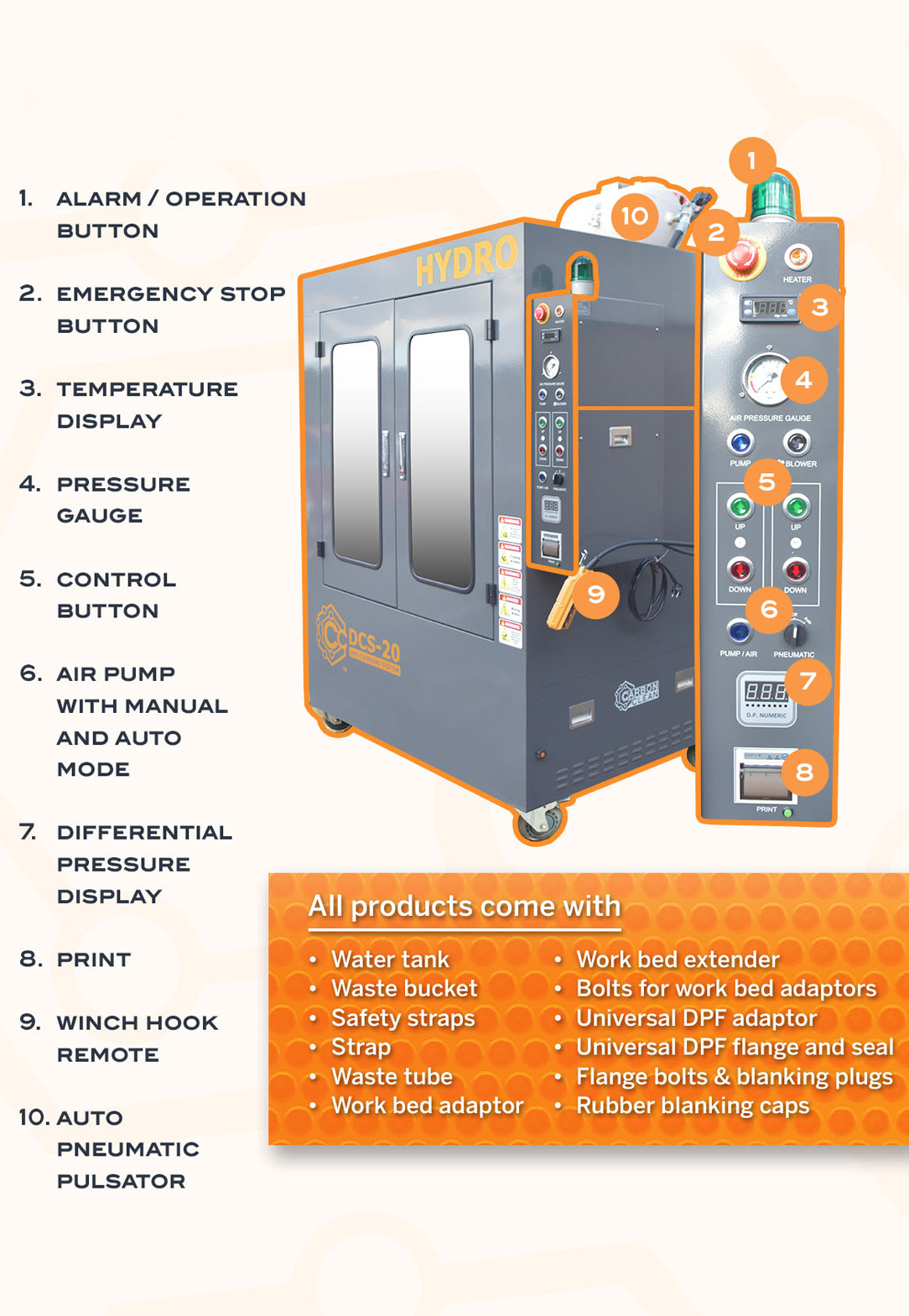 A heavy duty commercial DPF machine, equipped to efficiently handle any domestic or commercial DPF ranging to even boats and motorbikes, with some notable added features.